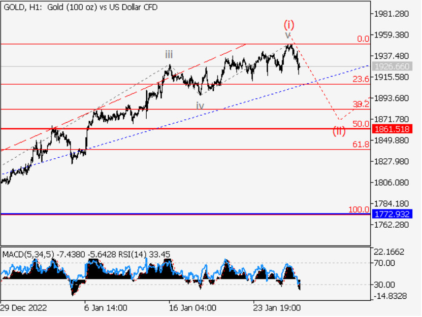 黄金分析:在日线图上第四波(4)较大程度的时候,一个下降修正似乎已经形成,(4)的波С在内部完成。显然,第五波(5)开始在H4图上形成,(5)中1次的第一个反趋势波形成,(5)中1次的修正波ii完成,(5)中1次的波iii在内部发展。假设在H1图上形成了1的iii的波(i),并且局部修正开始展开为1的iii的波(ii)。如果假设是正确的,一旦修正结束,该货币对将继续上升到2000.00 - 2050.00的水平。在这种情况下,1861.51的水平非常关键,因为它的突破将使该货币对继续下跌至1772.93 - 1723.86的水平。