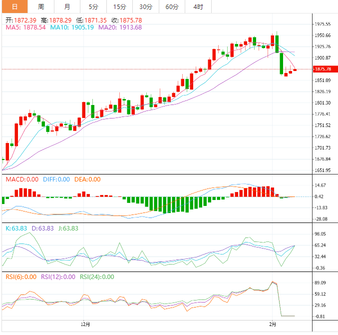 周三亚洲时段,黄金交投于1875.79附近。金价周二勉力上涨,美元小幅回调,投资者消化美联储主席鲍威尔关于加息政策前景的发言。现货金上涨0.2%,至每盎司1870.49美元。鲍威尔周二表示,最新的美国就业报告显示,推动通胀回到美联储2%目标附近的过程将需要“相当长的时间”,并指出需要进一步提高利率。鲍威尔讲话后,美元指数从一个月高位回落,推动金价一度跳涨0.8%。