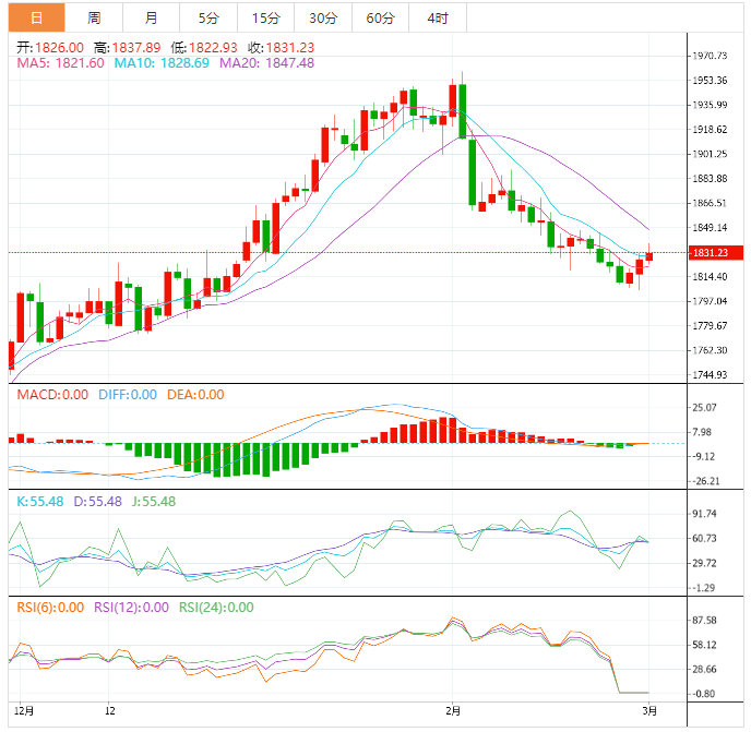 今年黄金价格以1823.76美元开市,并在2月2日达到1960美元的年内高点,当时正值美联储(fed)今年首次会议和美国1月份就业报告出人意料地发布之间。此后黄金价格大幅下跌,跌至略高于1800美元的年内低点,并在此找到支撑。