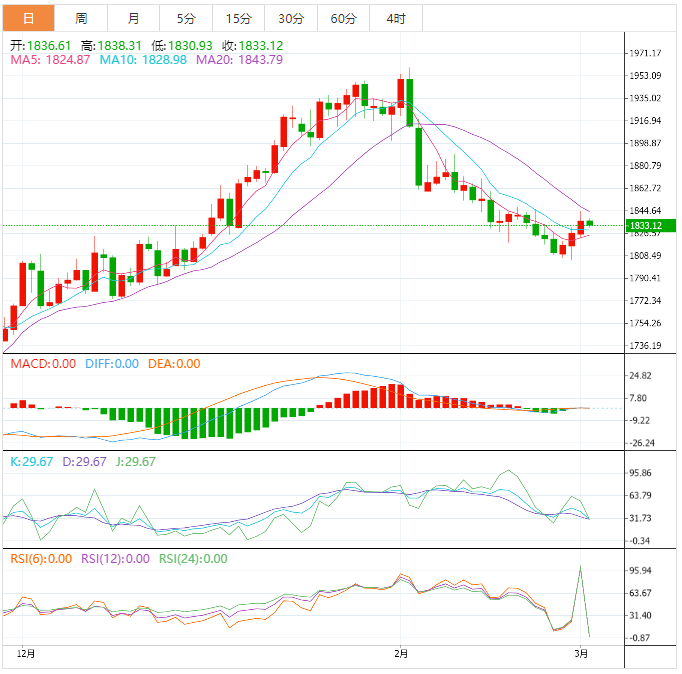 黄金价格从两个月低点反弹三天后回落至1,836美元,因金属买家难以获得一个重大的积极催化剂来支持最新的上涨,尤其是在美国数据和美国国债收益率(殖利率)乐观的情况下。然而,值得注意的是,在缺乏重大数据/事件的情况下,美元走软和与中国相关的市场乐观情绪为黄金价格提供了支撑。