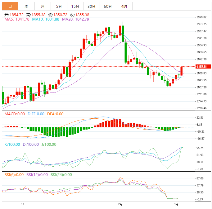 黄金价格在3月份开始的时候走在了前脚,在五年内首次出现了积极的周收盘。黄金多头在周一亚洲交易时段的早些时候保持了控制权,尽管从两周以来的最高水平回落至1,857美元左右。