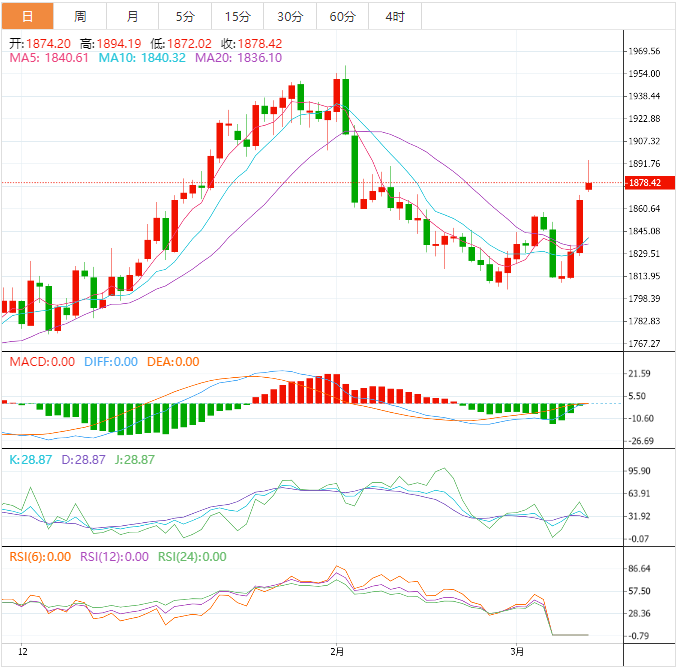 4小时级别黄金双底支撑反弹,上涨过程中基本上没有多少回调,价格一路上涨突破前期高点后继续放量,多头也是非常强势,结构上看黄金1959下跌1804的下跌趋势已经结束,加之美国就业数据表现疲软,对黄金的多头预期有一定提振,从周线级别来看,上周五金价自1828涨到1870附近,涨幅过大,周一行情也许都是在此区间震荡去修正。综合来看,回调做多为主,反弹做空为辅,上方短期重点关注1895-1900一线阻力,下方短期重点关注1870-1865一线支撑。