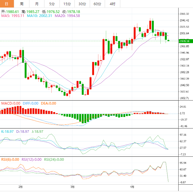 黄金价格已经在两小时的范围内完成了头肩图形态的突破。金价在跌破4月19日低点1,969.26美元的即时支撑位后可能进一步走软。