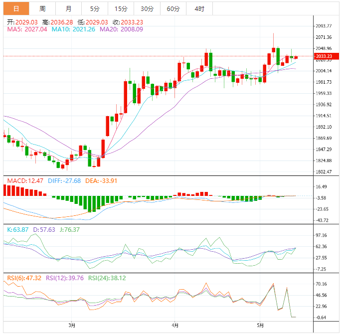 美国4月通胀数据支持美联储(Fed)的鹰派希望消退,金价仍将录得为期三周的上涨趋势。美国消费者价格指数(CPI)两年来首次跌破5.0%。然而,根据联邦基金期货,美国的通胀细节并没有那么负面,似乎使美联储在2023年9月之前不会降息,这反过来又让金价的买家充满希望。