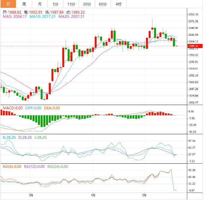 即使金价成功突破关键的移动均线和数天前的支撑线,分别接近2005美元和2010美元,从5月3日开始的下行阻力线,最迟接近2020美元,也将是对金价多头的额外抑制。