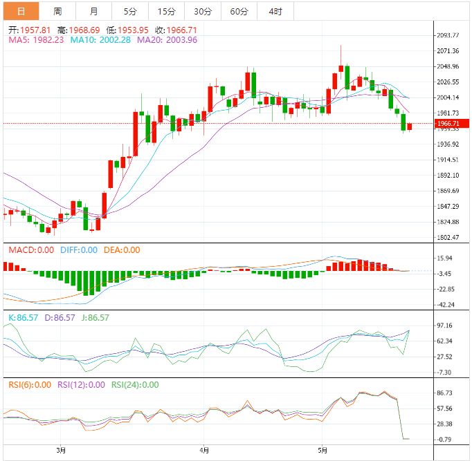 10期指数移动平均线(EMA)位于1969.25美元,限制了黄金多头的上行空间。