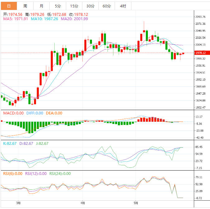 金价在1970美元附近波动,支撑汇流包括四小时布林线的中间带,一天38.2%的斐波那契和一周23.6%的斐波那契。