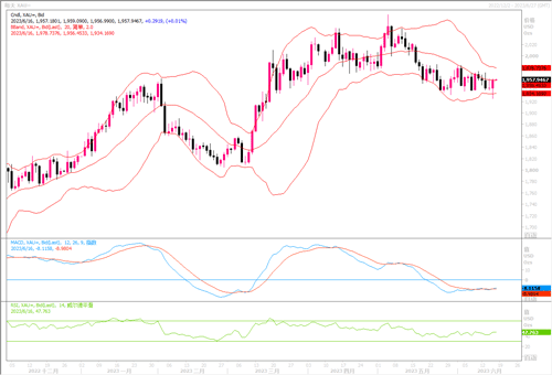 周四(6月15日),欧洲央行一如预期将利率提高了25个基点,至3.5%,为22年来最高。欧央行的举动使美元在汇市上大幅回落,拜其所赐,黄金获得低位反弹动能,当日回升了0.79%,收盘于1957.48美元水平。当日最低曾落至1926.24美元,最高触碰1960.24美元。