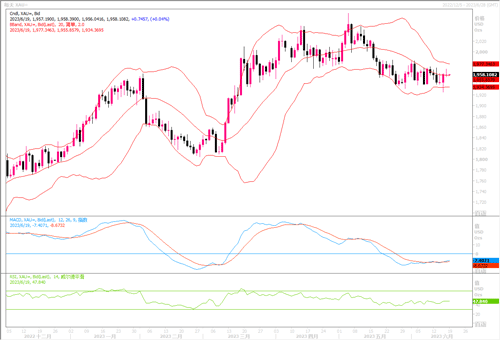 技术面上来看,上周五日线收了一根小阳柱,布林带缩口,价格即将选择新的方向,KDJ指标形成金叉,大趋势短期内仍偏上行,且维持宽幅震荡运行,继续关注破位情况。当前下方关注1933/1918的支撑,上方关注1970/1985/2005等位置阻力。综合来看,预料在没有大事件冲击之下,本周黄金将可能继续保持在1930-1985的区间内横盘震荡。