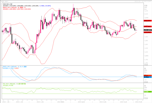 技术层面上,日线级别图上,震荡下跌;MACD死叉,KDJ死叉,金价回到所有短期均线下方,且失守布林线中轨,短线偏向空头,如果不能快速回升布林线中轨1945上方,金价可能会进一步跌向布林线下轨1901.74附近,甚至是近期低点1892.85附近,200日均线支撑也在该位置附近。短线的话,1920关口和7月10日低点1912.57附近也分别存在一些支撑。若金价意外回升至55日均线上方,则削弱短线看空信号;进一步阻力参考10日均线1953.47附近,然后是1960关口附近阻力,强阻力在100日均线1968.51附近位置,若能顶破该阻力,则增加后市看涨信号。