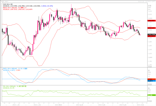 周三(8月9日)现货黄金走势挣扎,投资者在美国关键通胀数据公布前离场观望。美市盘中,现货黄金一度升至1927.60美元/盎司,但随后短线下挫近8美元,失守1920美元/盎司,最后全日以最低价1913.70美元/盎司收盘。