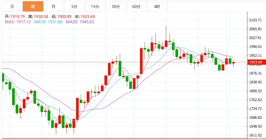 周五(9月15日),受美国最新经济报告影响,金价本周测试1900美元/盎司美元区域,终于成功守住上方并反弹,消除了周跌幅并触及1930美元/盎司区域。整体趋势仍然偏向下行,美元走强令黄金承压。下周的焦点是各国央行,包括美联储(Fed)的决定,但预计不会有太大变化,市场动态可能保持不变,这可能会对金价产生不利影响。截止发稿,现货黄金本周录得小幅上涨,但整体波动不大。周五(9月15日)收盘,现货黄金收报1923.64美元/盎司,收涨13.02美元/盎司(或0.68%),周涨幅0.26%。