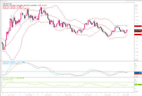 上周初,由于美国显示通胀情况的CPI、PPI以及零售销售等数均强于预期,导致金价周初一路走弱,向1900美元逼近。但进入周四开始修正性反弹,周五公布9月密西根大学消费者信心指数初值从8月终值69.5降至67.7,低于路透访查经济学家预测的69.1。不过,消费者的一年和五年通胀预期均有所下降。数据导致金价大幅上涨,一度触及1930美元。期间黄金也经历了欧洲央行决策引发的反弹。尽管欧央行将利率上调25个基点至历史高位,但有迹象表明这可能是当前紧缩周期中的最后一次升息,这引发了市场行动,推动欧元和欧元区收益率下跌。这对黄金产生了利好影响,并帮助其保持在1900美元以上的水平。接下来,本周周三的美联储会议将成为贵金属市场关注的焦点。目前的情况是,美国经济表现优异,因此美联储可以在较长一段时间内将利率维持在当前水平(如果通胀继续反弹,利率水平甚至会更高)。从基本面来看,在这种说法改变之前,黄金的任何复苏都将被视为不可持续。而另一方面,如果美联储的基调意外略微转向不那么鹰派或鸽派,且如欧央行那般显露加息周期终点已至,那么美债券收益率可能会大幅下降,也就会为黄金提供一个不错的提振。结果如何且拭目以待吧!