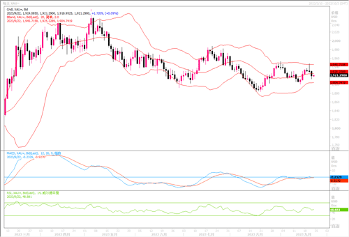 周四(9月21日),欧市盘中,受美联储鹰派指引支撑,美元指数保持坚挺走势,现货黄金最终不得不下滑,当日下滑0.55%,收盘于.10美元,日内最低曾触及1913.00美元。