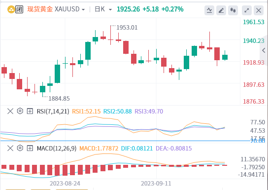 现货黄金周五收报1925.21美元,本周上升1.57美元或0.08%。