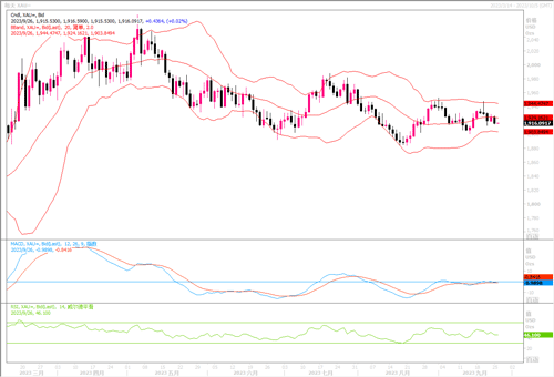 周一(9月25日),尽管利率上升,但美国经济仍保持弹性,美元指数延续涨势,一度刷新逾十个月高点至106.10,且连续五个交易日上涨,令金价小幅承压下行。现货黄金价格周一收跌0.50%(或9.60美元),收报1915.06美元/盎司。