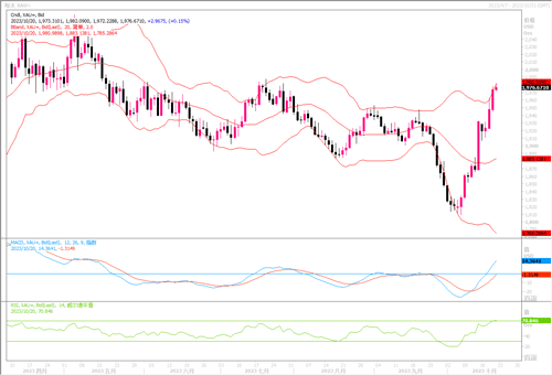 周四(10月19日),金价维持看涨压力,并升至1970美元/盎司上方。由于中东局势持续紧张,以及美联储主席鲍威尔在纽约经济俱乐部发表的讲话被认为偏鸽,促使黄金发力加速拔高。
