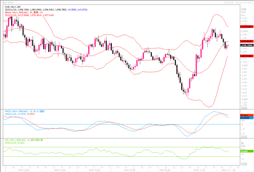 周四(11月9日),黄金当日在触及近一个月低点1943.60美元水平后出现反弹,最后收盘于1958.19美元,当日上涨0.4%。