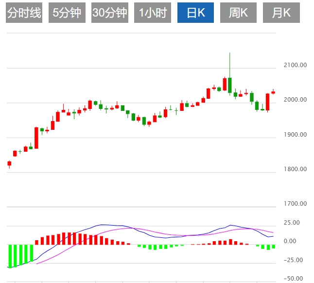 周三最低至1973后欧盘回升,盘中强调短线4小时转强,有望借助利率决议回升;凌晨实际受降息预期影响快速拉高至2030,日图转录大阳,K线组合呈多头排列,预期周尾会延续上涨,短线的思路看涨不变,短线上方2040一线将成为重要阻力,突破将会继续走高,日内等待回落后继续多,关注下方2020-2010一线支撑,在强势上涨的行情中,基本上不会有大幅度回落,美联储预计明年将三次降息25个基点,这推动市场大幅走高。