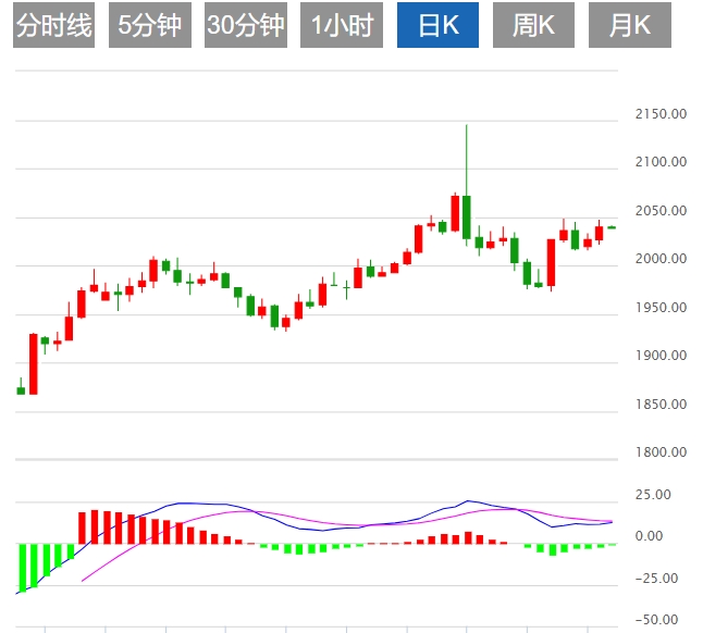 由于缺乏持续利好因素影响,金价今日在2040美元附近窄幅震荡。黄金本周逐渐回调,但仍保持在20天指数移动平均线(EMA)上方,这表明短期趋势看涨。若涨势持续,将尝试突破上方阻力2050.00美元以及2100.00美元。