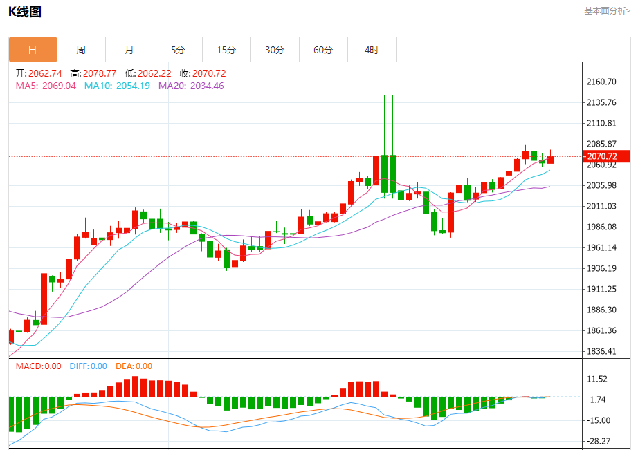 周二盘中,现货黄金报2067.50,涨幅0.24%。