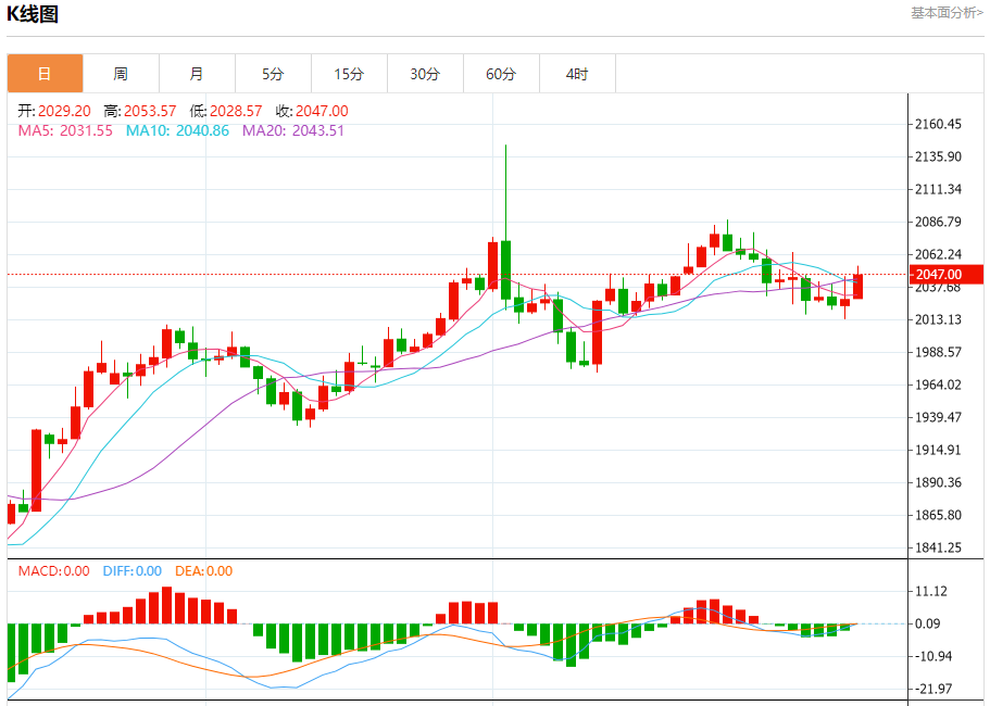技术点评:在2037.00之上,为多头信号,向上的目标位为2060.00。