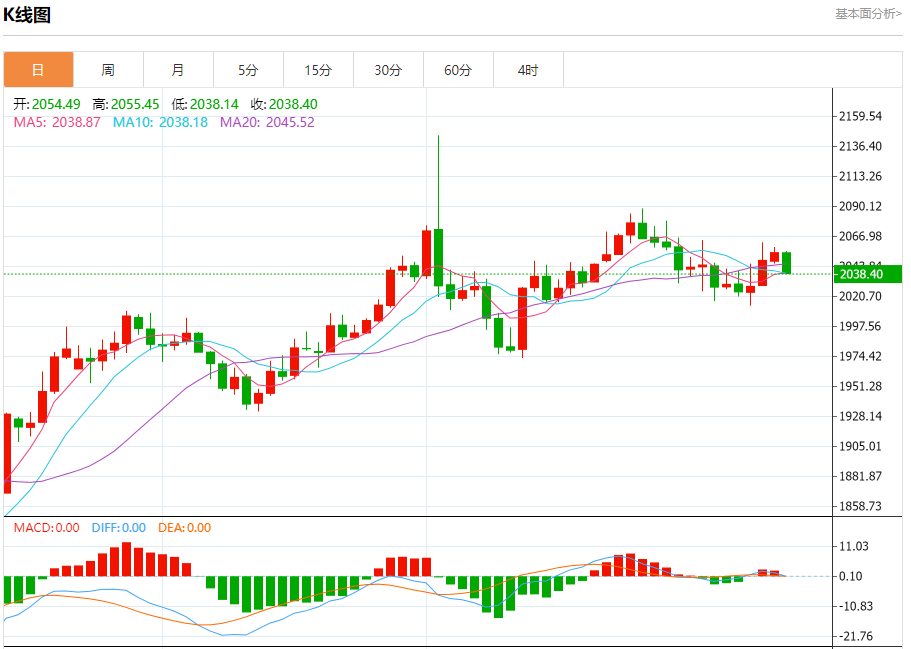 截止发稿,黄金价格现报于2038.41,跌幅0.79%。(亚汇网编辑:冰凡)
