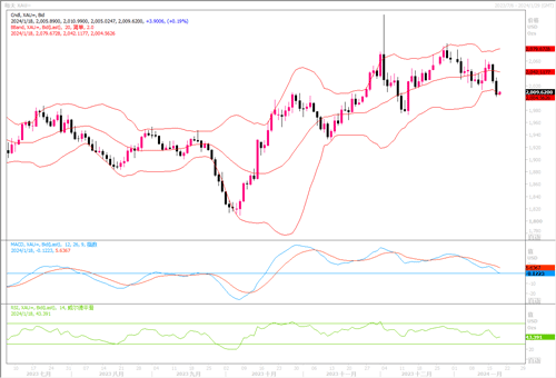 周三(1月17日),美国公布强劲的零售销售数据,刺激美元创一个月以来新高,导致金价触及逾一个月最低至每盎司2,003.89美元。继前一个交易日下跌1.3%后,黄金周三继续下跌了1.2%,最终低收盘在2005.71美元/盎司。