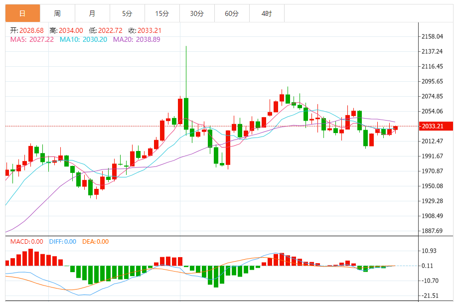 截止发稿,黄金价格现报于2033.26,涨幅0.20%。(亚汇网编辑:冰凡)