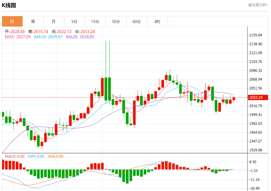 周三盘中,现货黄金报2035.88,涨幅0.33%。