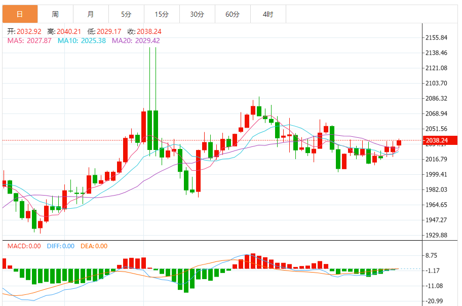预计今日金价交投将于支撑位2020.00美元/盎司以及阻力位2050.00美元/盎司之间。今日对于黄金价格的预期趋势为看涨。