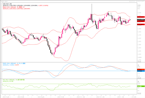 周二指标10年期美国公债收益率触及两周最低,刺激了金价的走升。虽然昨日的美国12月JOLTs职位空缺数据高于预期的875万个,升至902.6万个,为三个月新高,也令互换市场将美联储3月份降息的概率降至约40%。但市场更大程度上还是期盼从周三美联储利率会议上获得更多或有利于黄金的影响消息流出,黄金显示出较强的韧劲。美联储的货币政策立场是目前金价最重要的推动因素。因此,美联储的措辞以及美联储主席鲍威尔在周三美联储利率会议后举行的新闻发布会可能很重要。本轮美联储不会有加息和降息的动作已是共识,但会后的美联储主席讲话内容可以看做是美联储开年对市场的看法,如果偏向增加降息预期,那么美指将陷入回落过程,黄金走升。反之上半年的走势将继续陷入多空震荡的格局。