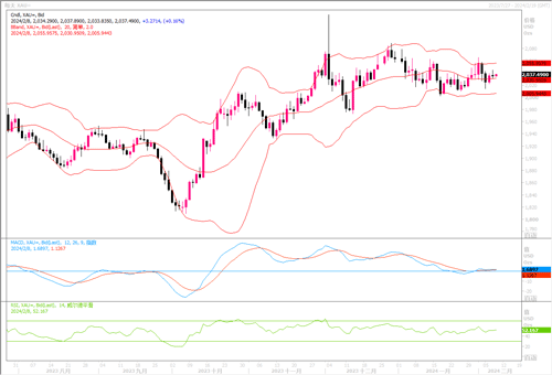 周三(2月7日),现货金持稳于每盎司2,034.82美元,窄投资者继续等待美联储官员就利率路径给出线索,黄金多空暂时胶着于窄幅区间内。