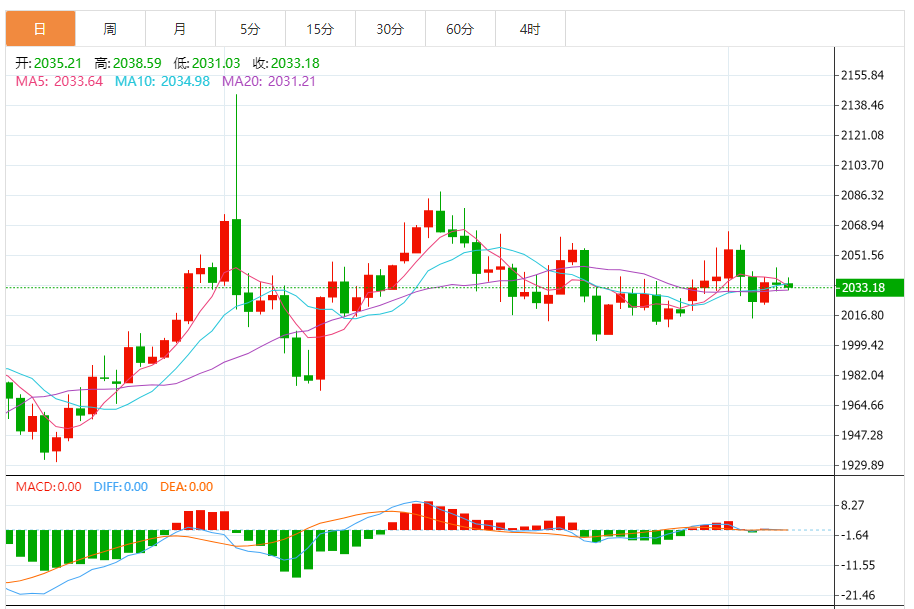 在接下来的几个交易日中,金价需要突破周三高点2044.64美元/盎司,以维持看涨倾向。