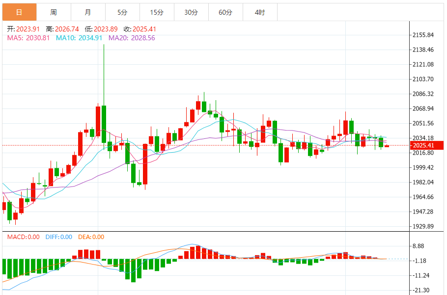 周一(2月12日),现货黄金基本持稳,目前交投在2025美元/盎司附近。上周,金价没有朝着任何一个方向做出决定性的变动。2020美元/盎司将成为黄金的首个短期技术支撑。美国1月份的通胀数据将于本周公布,这是本周黄金市场关注的焦点。上周,现货黄金收盘下跌0.74%,收报2024.49美元/盎司。