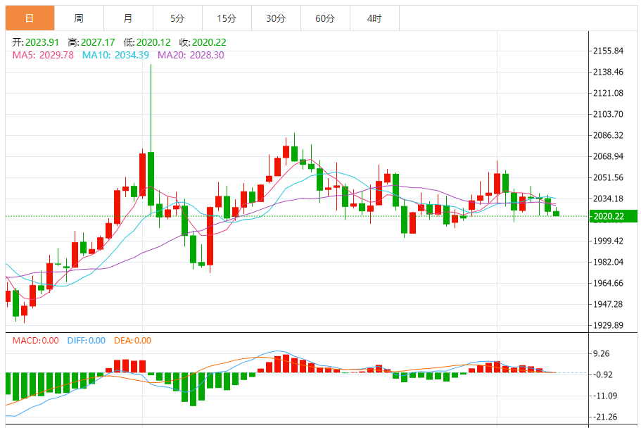现货黄金上周收盘下跌0.74%,收报2024.49美元/盎司。