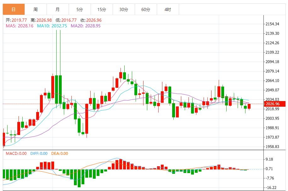 市场仍受到2032.45美元的50日均线的限制,这个中间趋势指标是今天的关键支点。