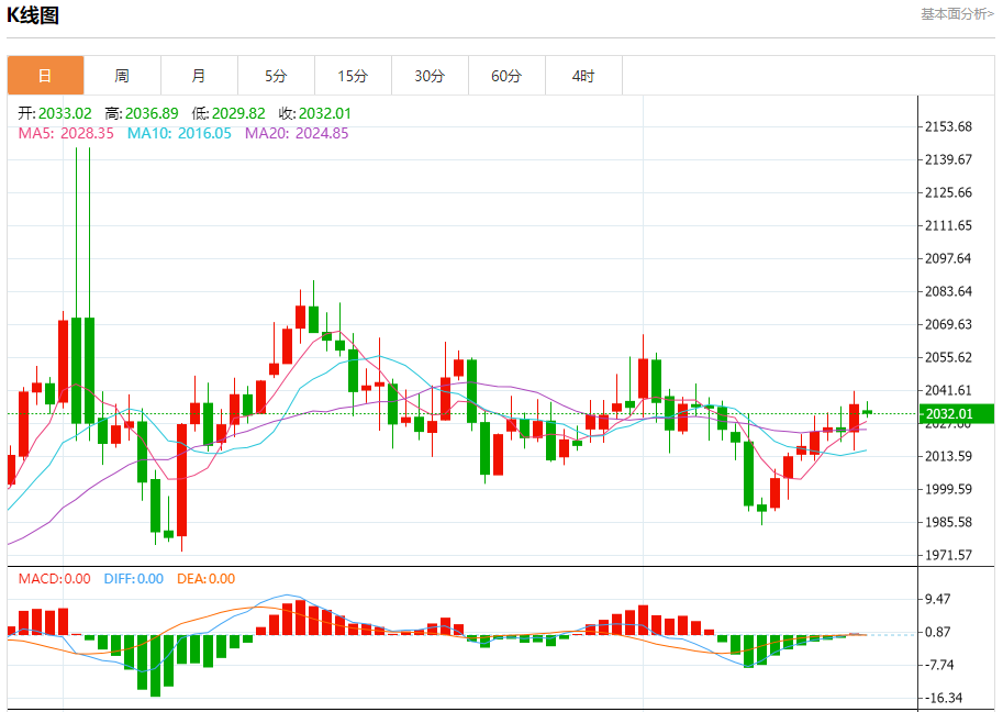周一盘中,现货黄金报2032.21,跌幅0.18%。