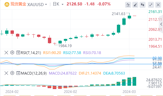 3月6日,周三亚盘,黄金交投于2126.50附近。