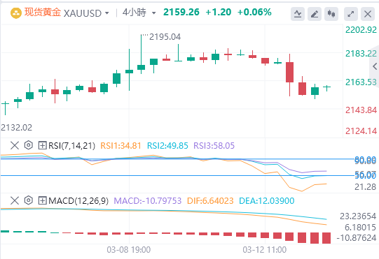 3月13日,周三亚市盘中,现货黄金在昨日大跌之后基本持稳,目前金价目前位于2159美元附近.