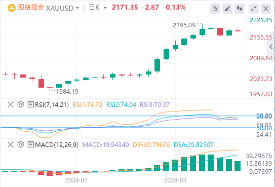 从技术角度看,只要金价上涨,都更有可能在2195美元附近即上周五触及的纪录高位附近遭遇阻力。只要金价突破2200美元大关出现跟进买盘将令金价一飞冲天,并被视为多头的新催化剂,为延续过去两周左右的井喷式涨势创造条件。
