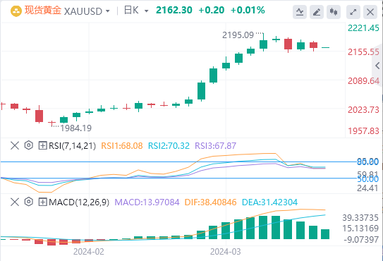 3月15日,周五亚市早盘,黄金交投于2162.30附近。