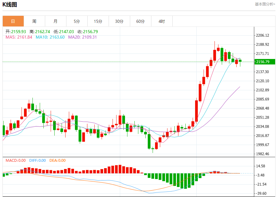周二盘中,现货黄金报2157.01,跌幅0.15%。