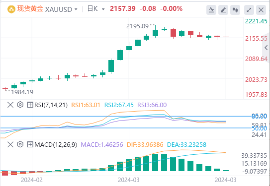 3月20日,周三亚盘,黄金交投于2157.39附近。