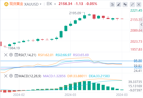 3月20日,周三欧市盘中,黄金延续了横盘整理价格走势,并在周一触及的一周低点上方震荡。上周公布的强劲的美国消费者和生产者通胀数据引发了人们对美联储可能推迟降息的猜测。与此同时,鹰派前景仍然支持美国国债收益率上升,这支撑了美元,并成为非收益黄金的逆风。