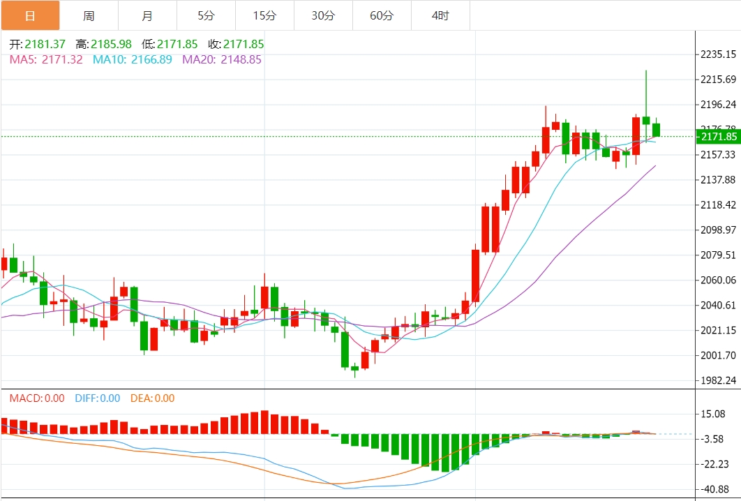支撑位:2163.40美元/盎司;2145.10美元/盎司;2134.70美元/盎司
