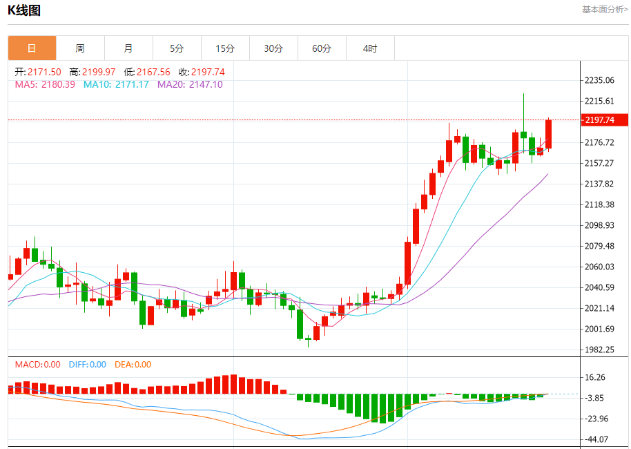 截止发稿,黄金价格现报于2197.69,涨幅1.20%。(亚汇网编辑:冰凡)