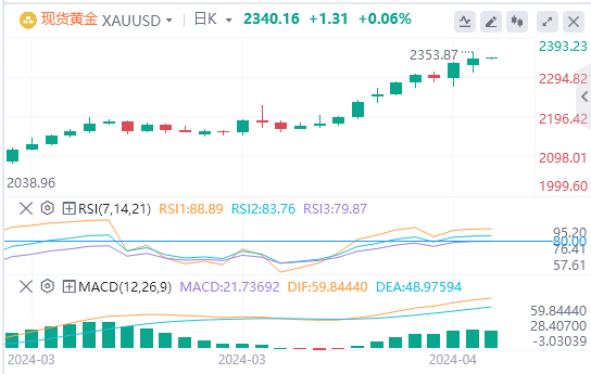 4月9日,周二亚市早盘,黄金徘徊在2340.16附近。