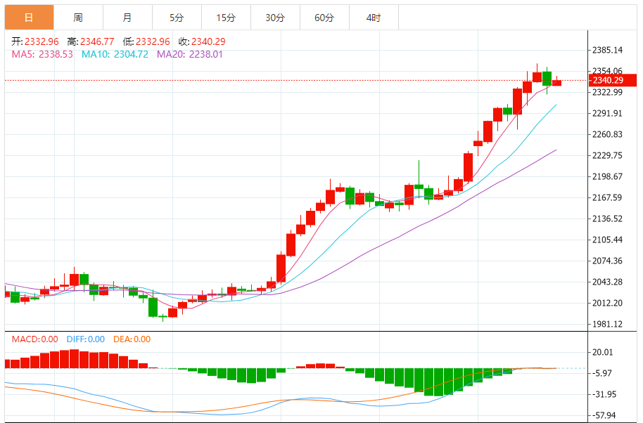 周四(4月11日),现货黄金维持日内反弹走势,金价目前交投在2340美元/盎司附近,日内上涨近10美元。