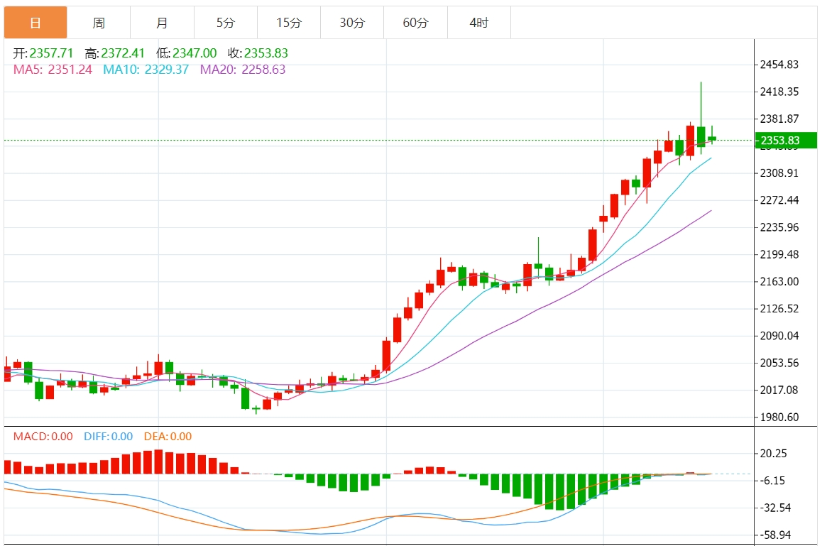 标准普尔500指数期货当日上涨0.30%,反映了市场的乐观情绪,这限制了金价的进一步上涨。展望未来,如果中东冲突加剧,金价可能会继续反弹至每盎司2400美元。但是,由于避险资金的增加和美联储的鹰派预期,对美元的需求重新抬头,可能会对金价的上涨起到逆风作用。